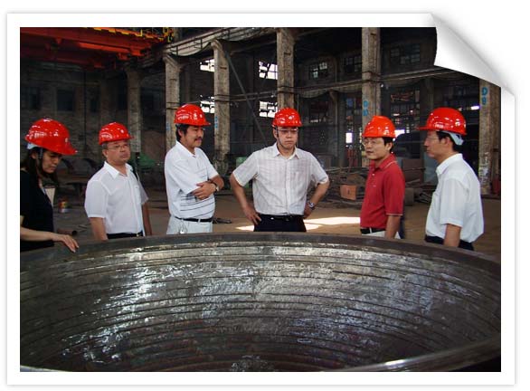 2008年8月1日下午,中國(guó)化工裝備總公司黨委副書記馮建國(guó),企劃處兼信息處處長(zhǎng)張從新,人事處副處長(zhǎng)楊英,財(cái)務(wù)處副處長(zhǎng)耿超穎,經(jīng)營(yíng)辦副主任吳俠一行到公司視察工作。常務(wù)副總經(jīng)理林德晃、黨委副書記姜衡陽(yáng)陪同視察了容器、金工、不銹鋼、汽輪機(jī)、鍛壓等各生產(chǎn)分廠和分公司。他們邊走邊談,馮副書記詳細(xì)了解我公司當(dāng)前生產(chǎn)情況和設(shè)備制造能力,安全生產(chǎn)和員工安居樂(lè)業(yè)的情況。