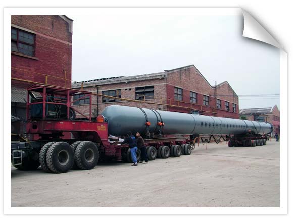 11月21日,宛若“巨龍”的34.6米長的氮氣儲罐從湘東化機啟運陜西咸陽。該產(chǎn)品重110.3T,長34600mm ×Ф 1500 ×84mm,是我公司制造成功的又一超長產(chǎn)品。近幾年,隨著市場的需要,公司調(diào)整產(chǎn)品結(jié)構(gòu),在承攬超長超重產(chǎn)品方面積累了不少經(jīng)驗,技術(shù)水平得到同行業(yè)認可,訂單不斷增加,此次近35米長氮氣儲罐的制造成功,再次顯示了公司在制造超長產(chǎn)品方面的市場競爭力。