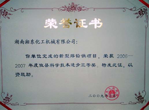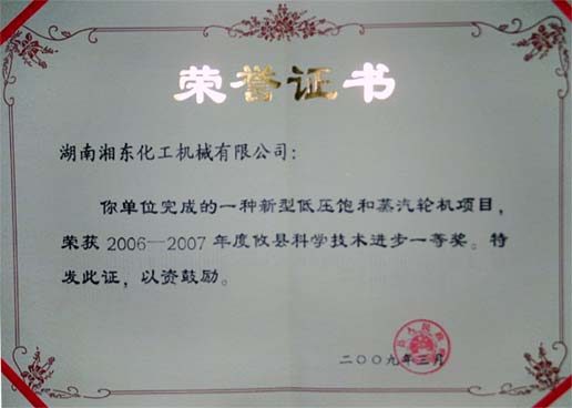 3月31日,從攸縣科技工作大會上獲悉,公司獲得2008年度科技工作先進單位,攸縣知識產(chǎn)權示范企業(yè)稱號。公司申報的新型低壓飽和蒸汽輪機項目獲得2006-2007年度攸縣科學技術進步一等獎;申報的新型熔鉛鍋項目獲得2006-2007年度攸縣科學技術進步三等獎。