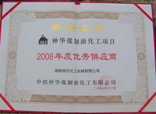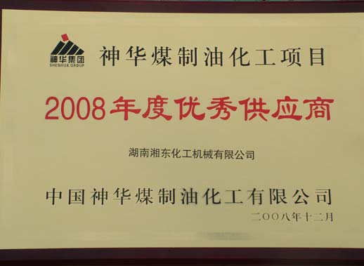 5月25日,從北京中國神華集團傳來喜訊,我公司獲得中國神華煤制油化工項目2008年度“優(yōu)秀供應商”稱號。