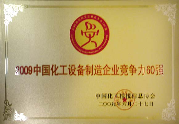 6月27日,湖南湘東化工機(jī)械有限公司被中國化工情報信息協(xié)會授予“2009年中國化工設(shè)備制造企業(yè)競爭力60強(qiáng)”稱號。