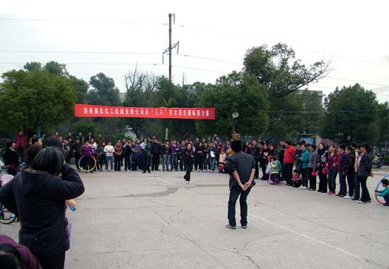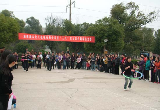 在“三八”國際勞動婦女節(jié)來臨之際,湖南湘東化工機(jī)械有限公司以“健康、和諧、溫馨”為主題,開展了內(nèi)容豐富、形式多樣的系列慶;顒。3月13日,公司組織女工進(jìn)行了轉(zhuǎn)呼啦圈、摸耳轉(zhuǎn)圈、跳繩、雙腳跳等組合趣味接力賽活動。這些喜聞樂見的活動不僅拉近了員工的距離,增強(qiáng)了凝聚力,而且進(jìn)一步激勵了廣大女工投身工作的積極性,很好地調(diào)節(jié)了員工身心健康,豐富了女工的節(jié)日生活。整個活動歡樂有趣,笑聲不斷,精彩紛呈,高潮迭起,充分展示了湘東化機(jī)新時代女工健康向上、充滿活力的精神面貌。