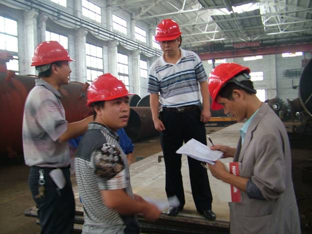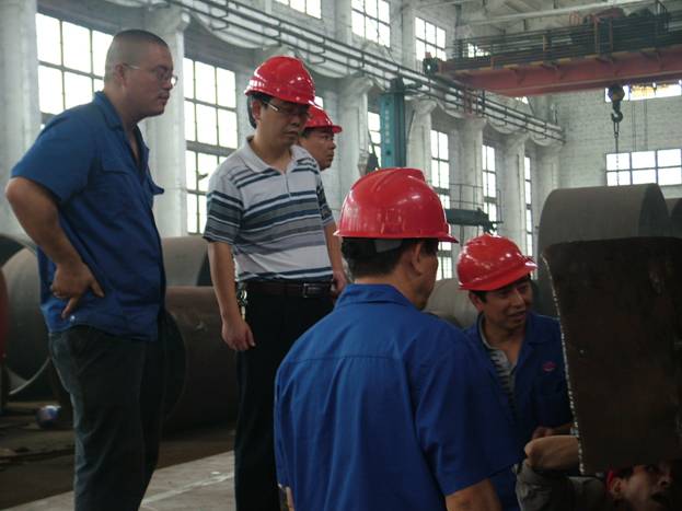 為強(qiáng)化對(duì)承壓類特種設(shè)備制造單位和制造監(jiān)督檢驗(yàn)機(jī)構(gòu)的監(jiān)管,確保特種設(shè)備制造質(zhì)量,根據(jù)湖南省質(zhì)量技術(shù)監(jiān)督局《關(guān)于對(duì)承壓類特種設(shè)備制造單位進(jìn)行現(xiàn)場(chǎng)安全監(jiān)督檢查的通知》湘質(zhì)監(jiān)函[2012]351號(hào)文件,2012年9月26日-27日,湖南省技術(shù)監(jiān)督局黃擁軍、蘇桔平、傅勁清、何鋼一行4人在市、縣質(zhì)量技術(shù)監(jiān)督局有關(guān)人員的陪同下來(lái)我公司檢查,檢查組對(duì)我公司許可資格、資源條件、質(zhì)量管理、檔案管理、現(xiàn)場(chǎng)管理、產(chǎn)品質(zhì)量等進(jìn)行了認(rèn)真檢查,檢查組認(rèn)為我公司機(jī)械加工制造能力較強(qiáng),對(duì)我公司質(zhì)保體系運(yùn)行情況給予了充分肯定,因公司目前生產(chǎn)分廠在制品較多,對(duì)生產(chǎn)現(xiàn)場(chǎng)在制品擺放提出了中肯的建議。