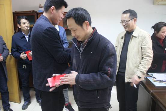 (春節(jié)開工第一天,董事長余棟梁代表公司為員工發(fā)開工紅包)